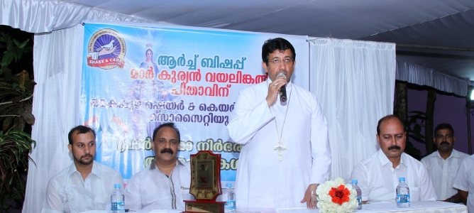 On 15th August 2016, at 8:00 pm a colourful reception function was organized by Share & Care Charitable Society at Chacko Joseph Karikulam Hall Kaipuzha, in honour of Arch Bishop Mar Kurian Vayalumkal. All members of the Society, with their families were present. The President of the Society Shaji Joseph Kannalayil, in his speech expressed his sincere gratitude, on behalf of the Share & Care Society, to accept our invitation and bless the Share & Care family gathering. Arch Bishop Mar Kurian Vayalumkal applauded the charitable activities of Share & Care Charitable Society Kaipuzha and conveyed his best wishes to all, on the occasion of India’s 70th Independence Day. He also thanked the office bearers and members of the Society and their families for arranging such a function in his honour. The parents of the Arch Bishop were also honoured in the function. The musical group of the Society sang greeting songs in honour of the Arch Bishop.